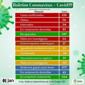 A Cidade de São Gonçalo do Rio Abaixo conseguiu virar dois dias (01 e 02/01/2021) sem registrar novos casos de infectados pelo novo coronavírus, de acordo com o boletim epidemiológico do município.