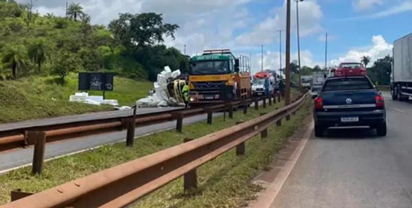 De acordo com a concessionária que administra a rodovia Fernão Dias, um caminhão carregado com laje de isopor tombou no KM 500, pouco depois do posto da Polícia Rodoviária Federal, perto da entrada para o bairro Citrolândia. O fato aconteceu por volta das 10h.