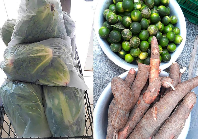 Dentre as doações feitas ao Lar de Ozanam de Itabira, estão: Limão, mandioca, banana caturra verde, cenoura, beterraba, inhame e quitandas: tudo isso é enviado semanalmente.