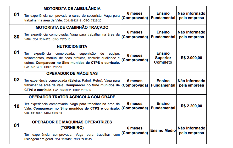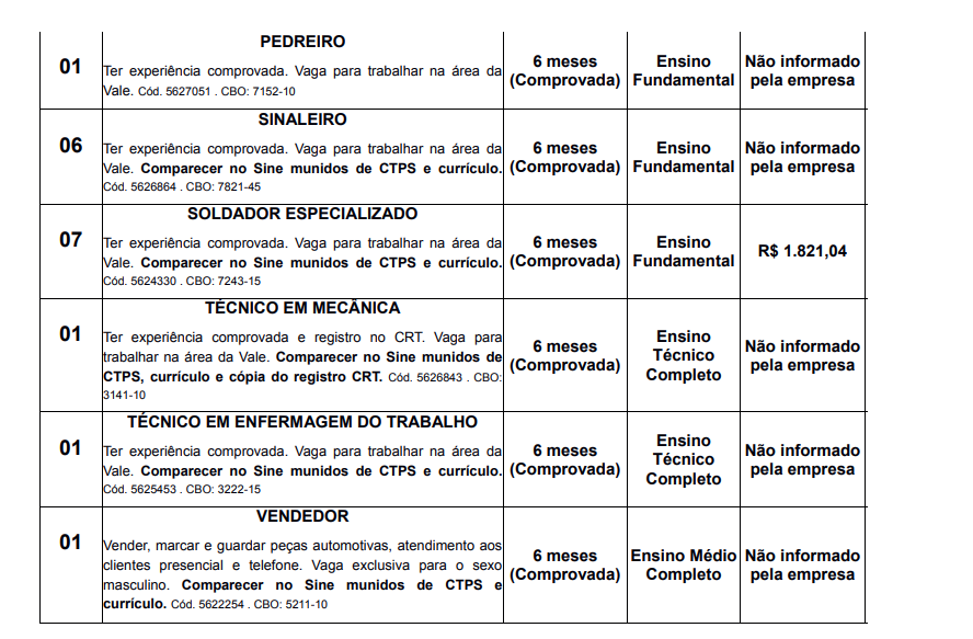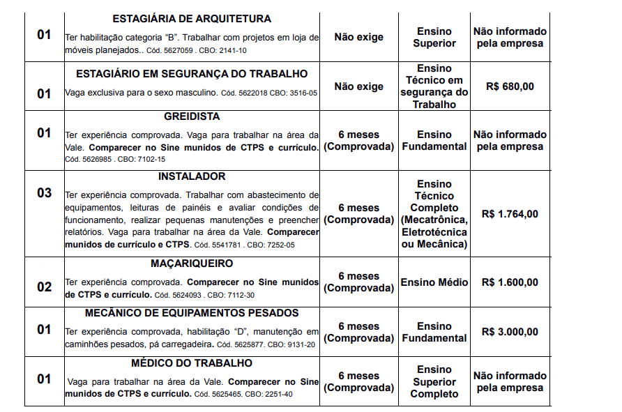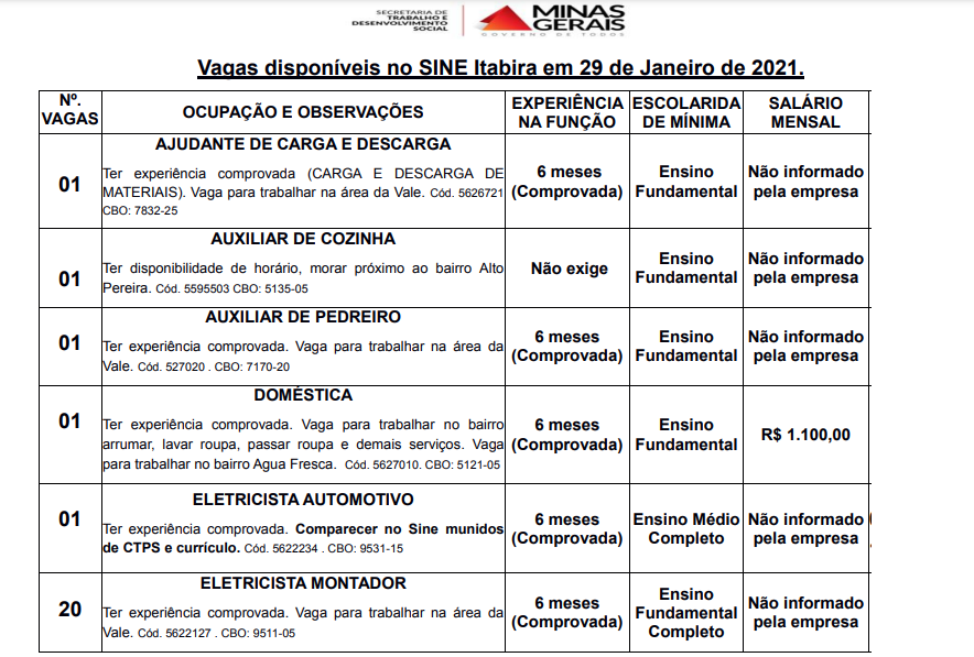 VAGAS de emprego SINE Itabira (29/01)