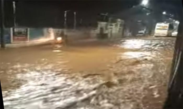 Na noite desta quinta-feira, 18 de fevereiro de 2021, a rua principal de entrada da cidade, por onde passa um córrego por debaixo da via, acabou transbordando por não suportar o volume de água.
