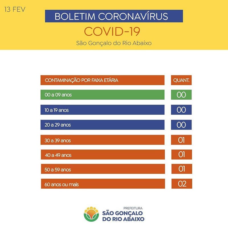 O Boletim Epidemiológico da Covid-19 da Prefeitura Municipal de São Gonçalo do Rio Abaixo (MG), divulgado na noite deste sábado (13/03/21), mostra que o município tem 771 casos confirmados e 08 óbitos registrados.