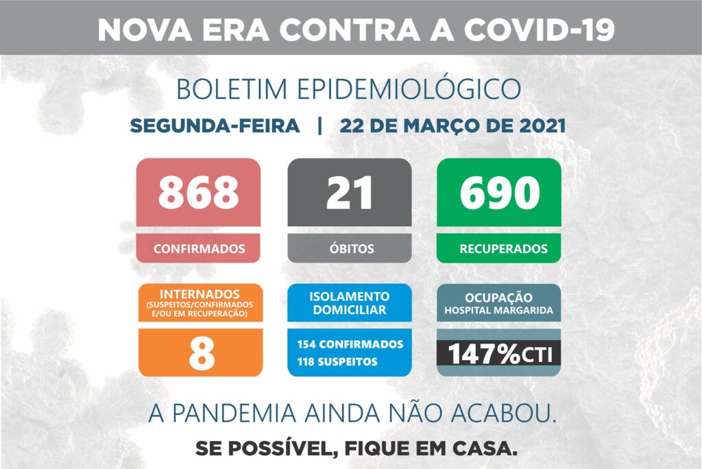 Ver mais + O Boletim Epidemiológico Covid-19 da Prefeitura Municipal de Nova Era (MG), divulgado na segunda-feira (22/03/21), mostra que o município tem 868 casos confirmados e 21 óbitos registrados. Veja o boletim completo: Veja também https://atilalemos.com.br/2021/03/23/itabira-chora-mais-8-obitos-por-covid-e-204-novos-casos-de-infectados/ Covid-19: Agência do Bradesco é fechada para higienização