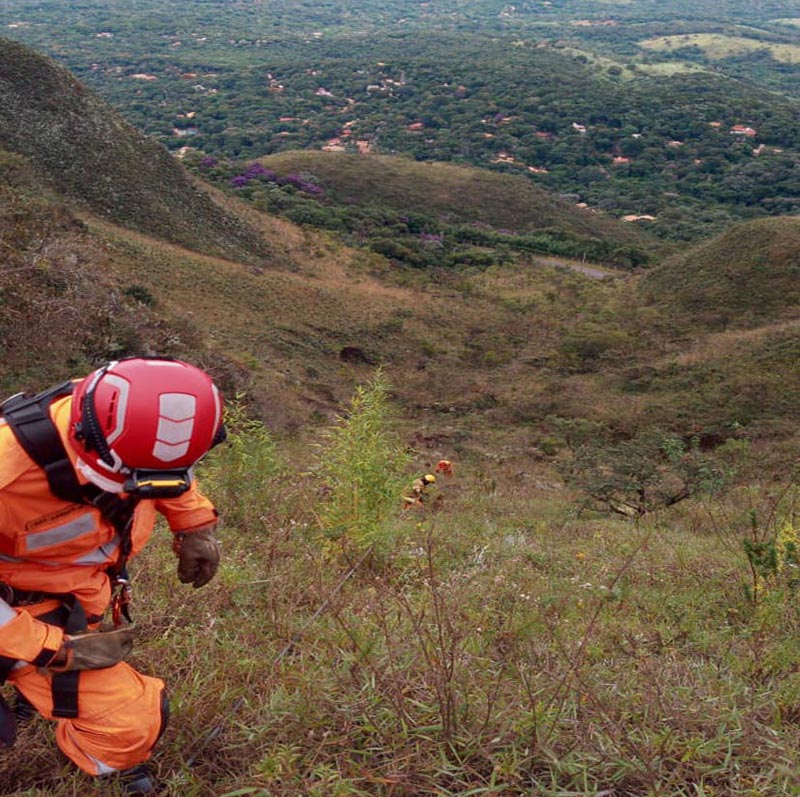 Os Militares do Corpo de Bombeiros realizaram buscas por uma mulher perdida na mata as margens da Rodovia BR040, local conhecido como Topo do Mundo.