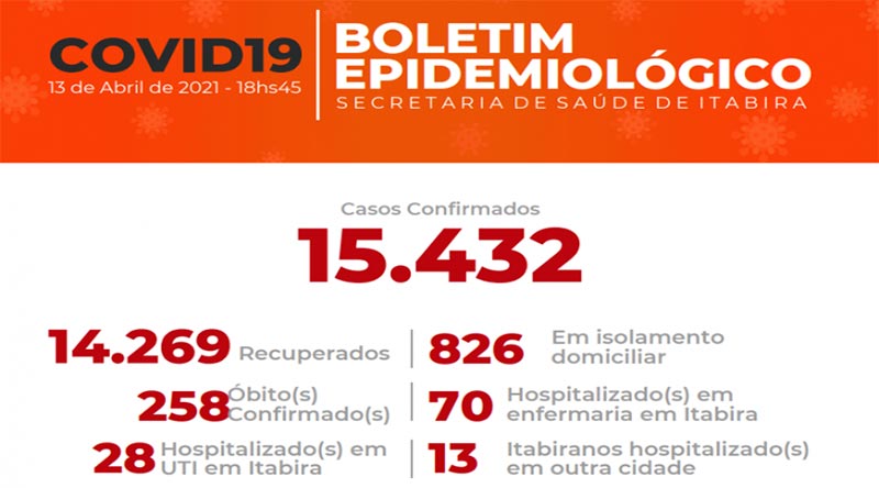 O total de óbitos por coronavírus em Itabira são 258, já outros 14.269 pacientes já se recuperaram desde o incio da pandemia.