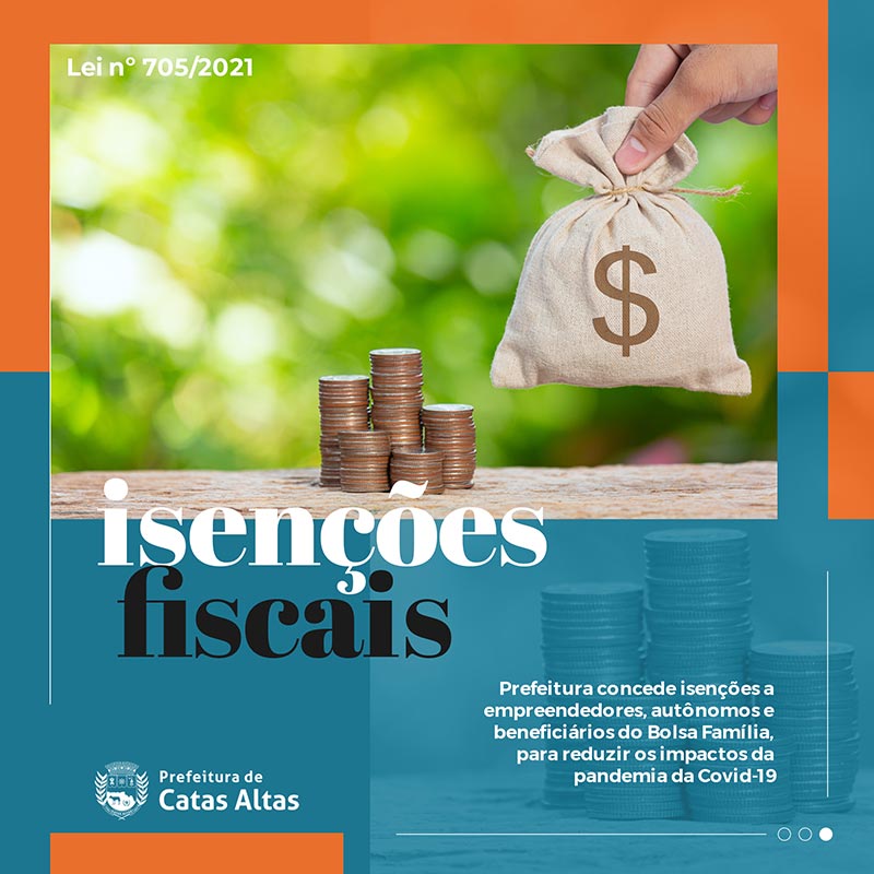 Buscando reduzir os impactos e prejuízos causados pela pandemia da Covid-19, a Prefeitura de Catas Altas dará isenções fiscais a empreendedores, autônomos e beneficiários do Programa Bolsa Família.