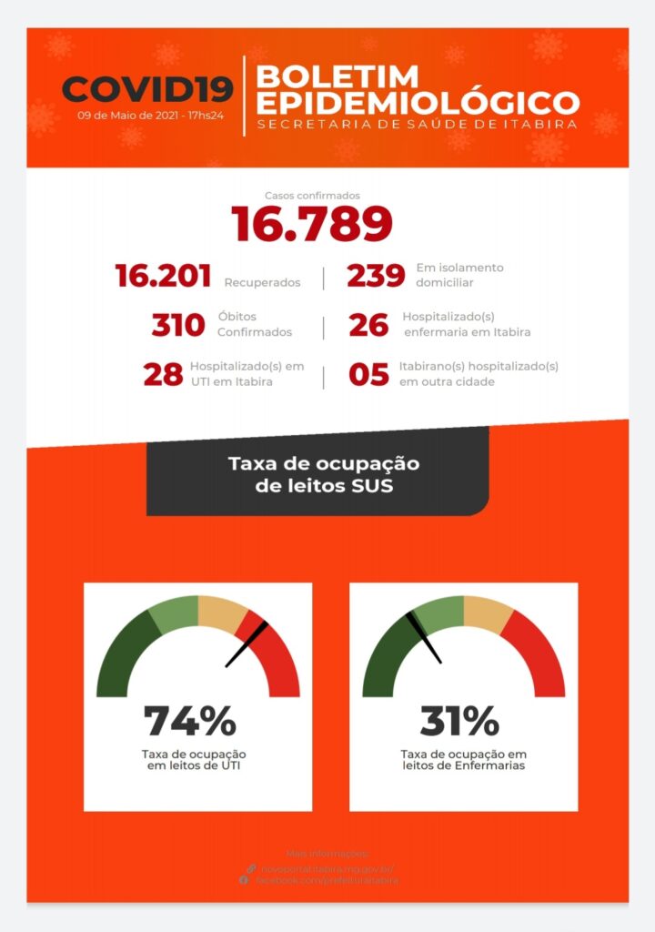 Ver mais + Veja também Covid: Itabira é o primeiro município a mapear os bairros Informe Epidemiológico Coronavírus MG (10/5/2021)
