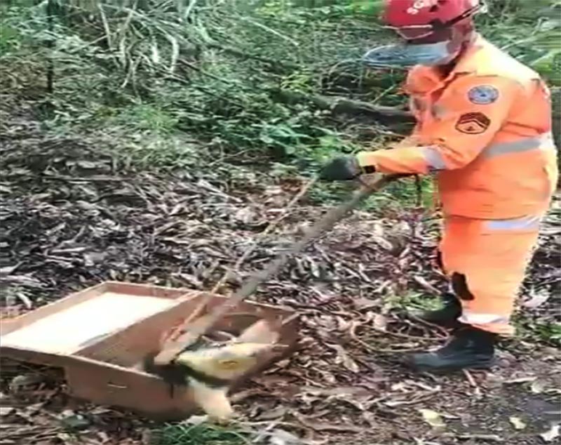 Vídeo: Tamanduá-mirim resgatado não quer sair da caixa