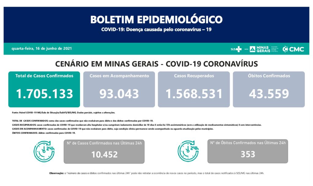 Informe Epidemiológico Coronavírus MG (16/6/2021)