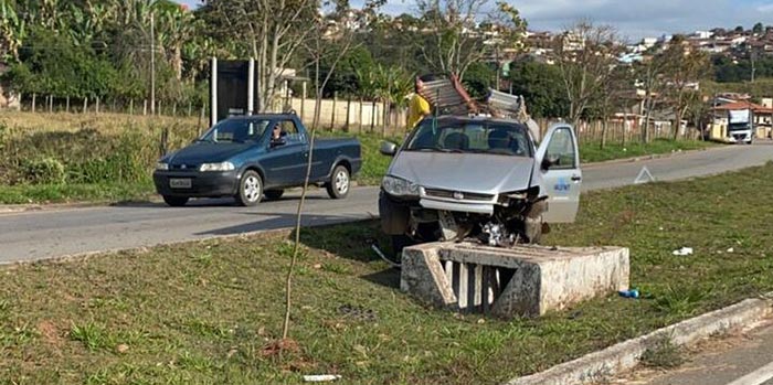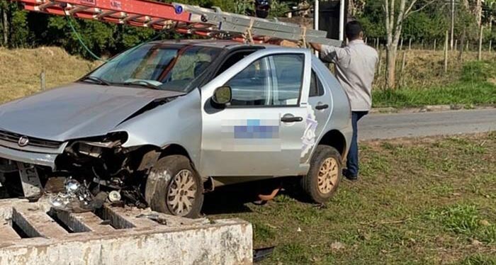 Para evitar o atropelamento dos animais, o motorista teria desviado, mas acabou perdendo o controle da direção, saindo da pista e batendo contra uma galeria de concreto, de escoamento de água pluvial.