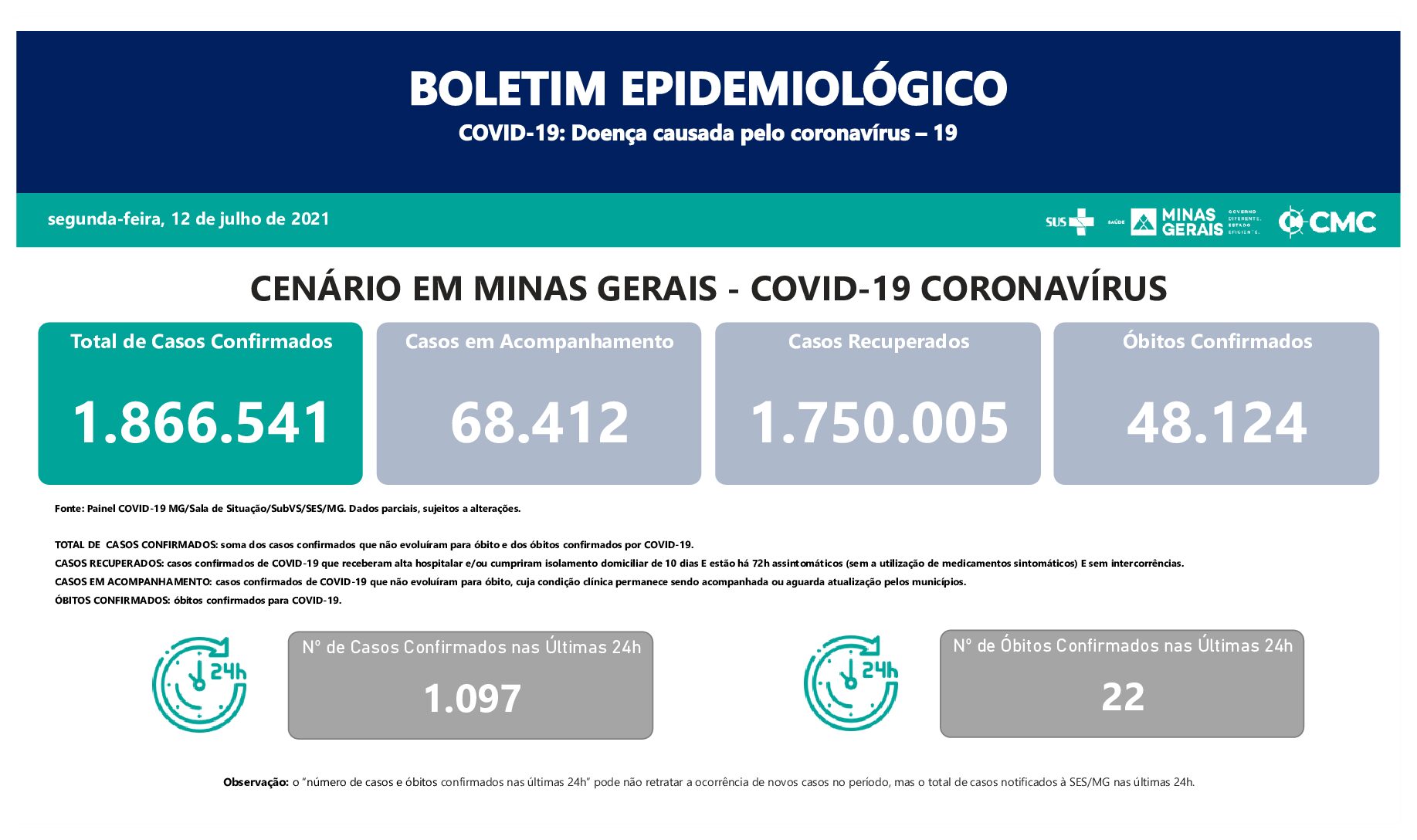 Dados parciais, sujeitos a alterações. Atualizado em 12/7/2021. Fonte: COES MINAS/COVID-19/SES-MG.