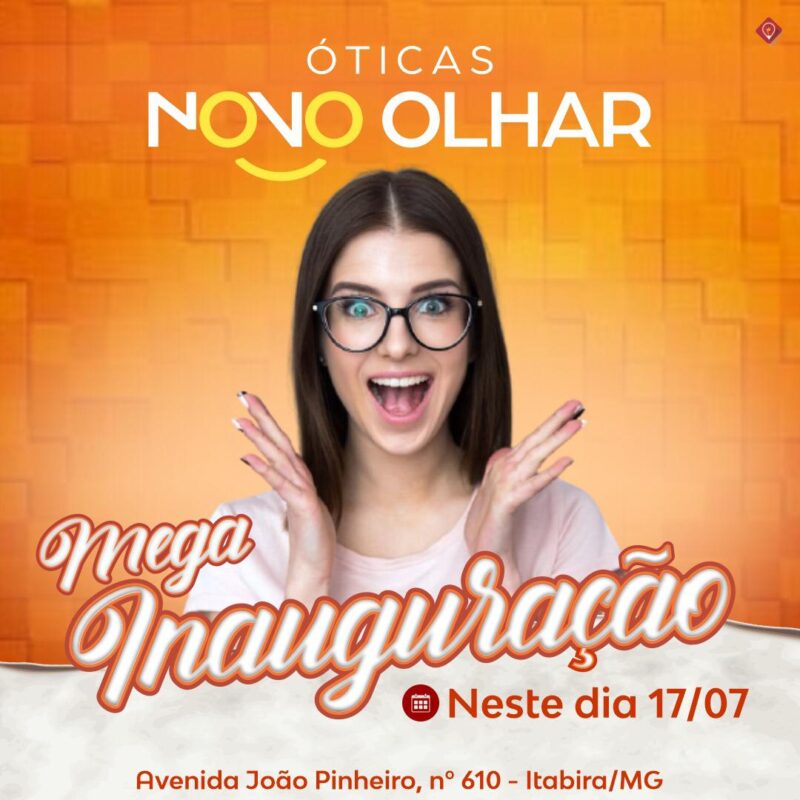 Acontece neste sábado dia 17 de julho a Mega Inauguração da Óticas Novo Olhar. Localizada na avenida João Pinheiro nº 610, Centro de Itabira.