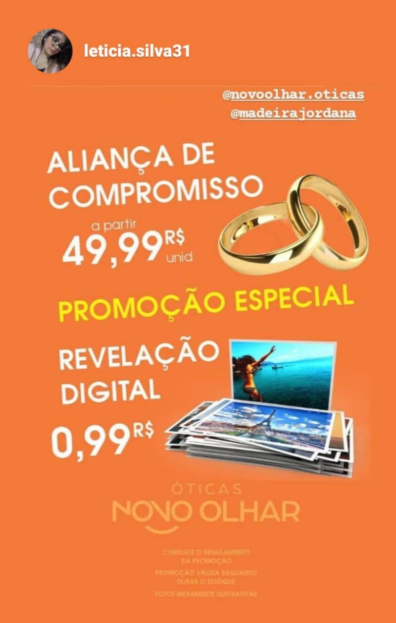 Na promoção de inauguração alianças de compromisso por R$ 49,99 e revelação digital por R$ 0,99.