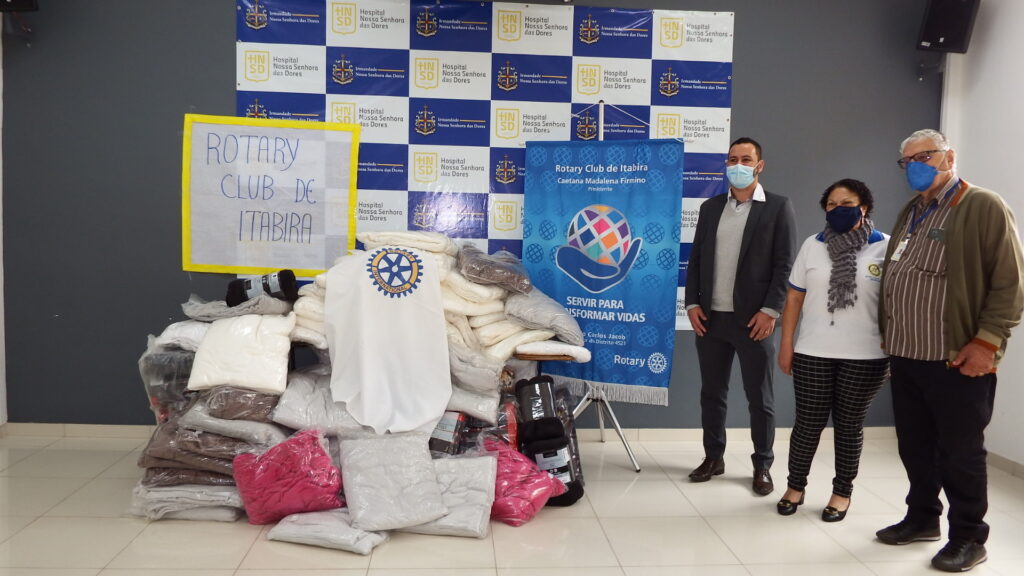 O Rotary Club Itabira doou ao Hospital Nossa Senhora das Dores (HNSD) 70 cobertores. As peças foram entregues pela presidente do clube Caetana Madalena Firmino ao provedor Márcio Labruna e ao diretor executivo do HNSD, Alexandre Coelho na terça-feira (4). A campanha realizada pelo Rotary foi motivada pela queda na temperatura nos últimos dias e atenderá os pacientes que estão internados na instituição.