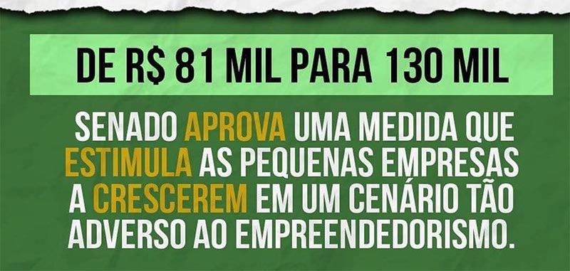 Com a proposta, o valor para ser enquadrado como MEI passa a ser de até R$ 130 mil anual. Atualmente, o valor máximo é até R$ 81 mil por ano. Ademais, o projeto aumenta de um para dois o número de funcionários que o microempreendedor individual poderá ter.