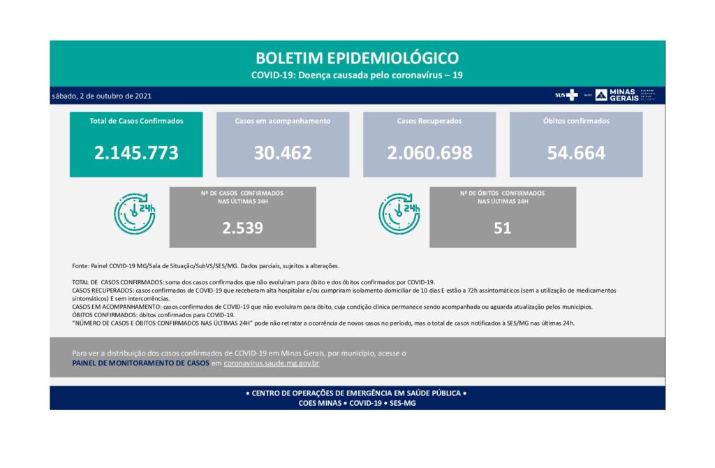 Informe Epidemiológico Coronavírus MG 2/10/2021