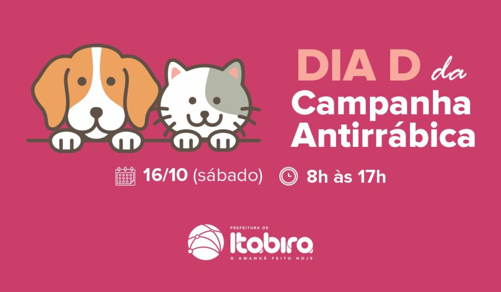 Neste sábado (16), Dia D da campanha de vacinação antirrábica, a Prefeitura de Itabira disponibilizará 25 pontos para a imunização de cães e gatos. Esta é a oportunidade para os donos de pets que ainda não conseguiram vacinar seus animais. As equipes de saúde estarão divididas em várias localidades, das 8h às 17h.