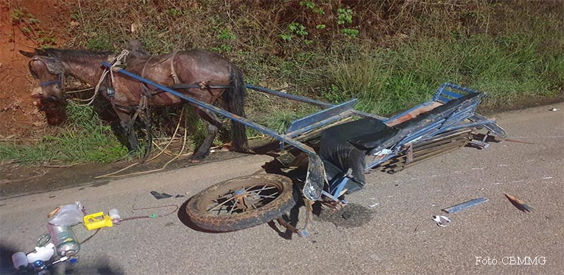 Infelizmente uma criança veio a óbito e outras quatro pessoas ficaram feridas após a colisão envolvendo uma motocicleta e a charrete.