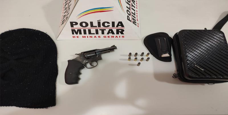 Além da arma de fogo e das munições, uma touca ninja também foi apreendida com o casal.
