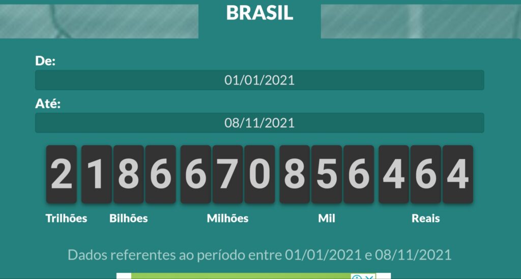 Os brasileiros já pagaram R$ 2,1 trilhões em tributos arrecadados desde o 1º dia do ano de 2021 pelos governos federal, estaduais e municipais, de acordo com o que registra o Impostômetro da Associação Comercial de São Paulo (ACSP).