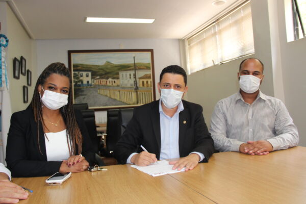 A parceria entre o Legislativo itabirano e a faculdade Una é mais uma ação da Escola do Legislativo Professor Paulo Neves e da mesa diretora eleita para o biênio 2021-2022. A assinatura do convênio aconteceu na sala presidência da Câmara, com a presença de todos os membros da mesa diretora, vereadores Weverton Leandro Santos Andrade “Vetão” (PSB), Rosilene Félix Guimarães (MDB), Reinaldo Lacerda Soares (PSDB) e Sidney Marques Guimarães (PTB); da diretora da Escola do Legislativo, Laura Souza; além da líder comercial e do gerente da faculdade, Fabiane Pena Medeiros e Gustavo Alves Lemos.