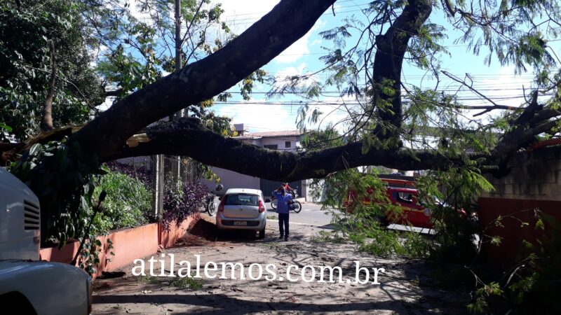 Uma árvore de grande porte tombou na rua Mister Chalton, no bairro Campestre, antiga rua da Delegacia de Policia Civil.