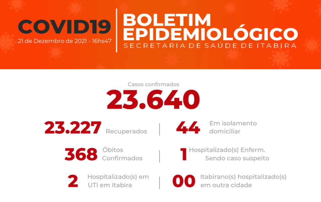 Itabira: 1 paciente (confirmado), Micro: 1 paciente de Santa Maria de Itabira (confirmado).