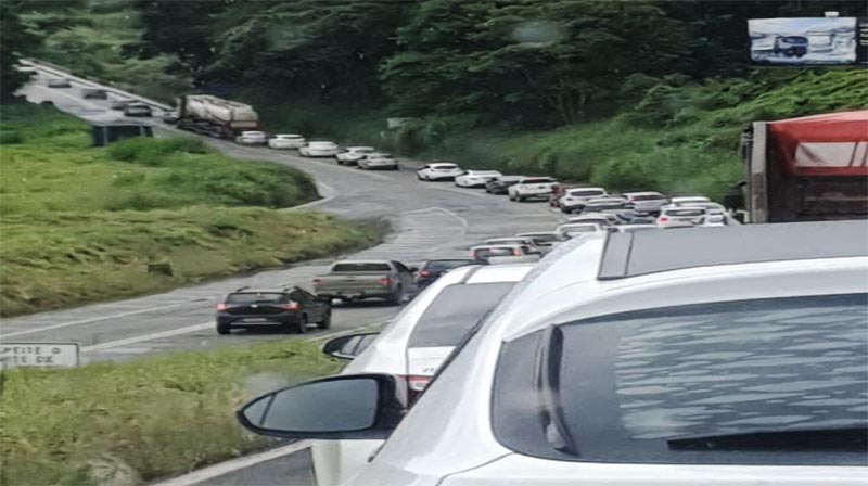 Existe grande lentidão e congestionamento no trecho, sem acidente no local, mas a atenção deve ser redobrada para evitar colisões traseiras.