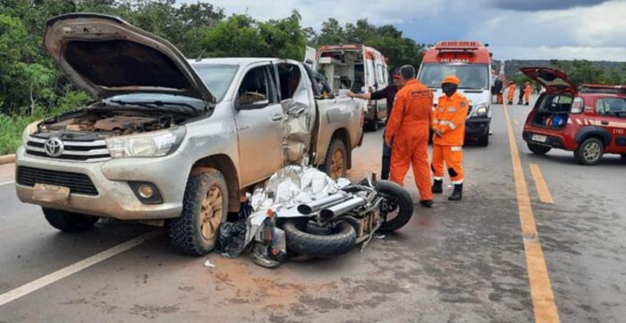 De acordo com as informações o acidente foi entre as cidades de Vale das Cancelas e Grão Mogol, no norte de Minas. Onde a colisão envolveu uma caminhonete Toyota Hilux e uma motocicleta.