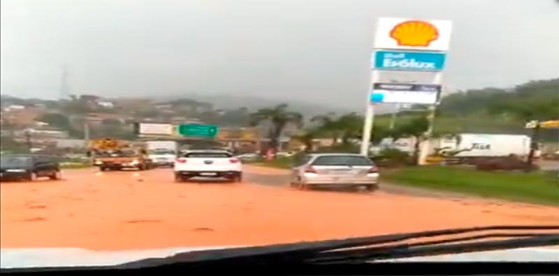 Desta vez o problema é com a grande quantidade de lama, seguido de alagamento, na saída de Belo Horizonte, mais precisamente na altura do Posto 13, próximo ao trevo de acesso ao município de Santa Luzia.