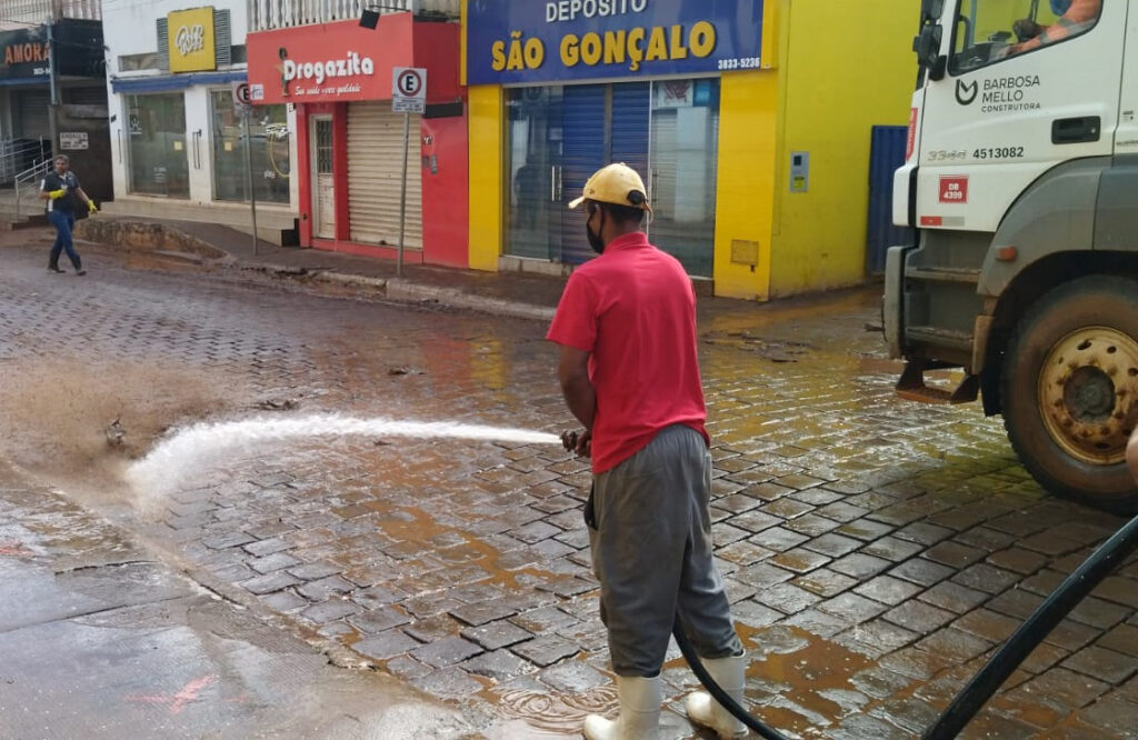 Em São Gonçalo do Rio Abaixo a população respira mais aliviada com o nível da água do rio Santa Bárbara baixando. Agora, as equipes da Prefeitura auxiliam os moradores na limpeza das casas, comércios e também atua na higienização das ruas da cidade.