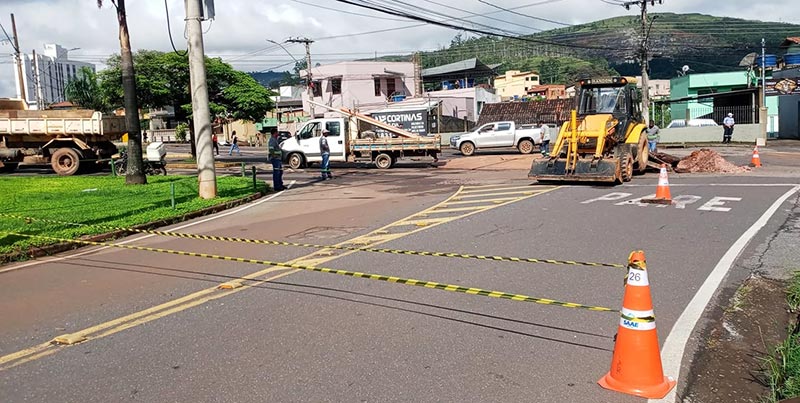Manutenção na rede de esgoto da avenida Duque de Caxias