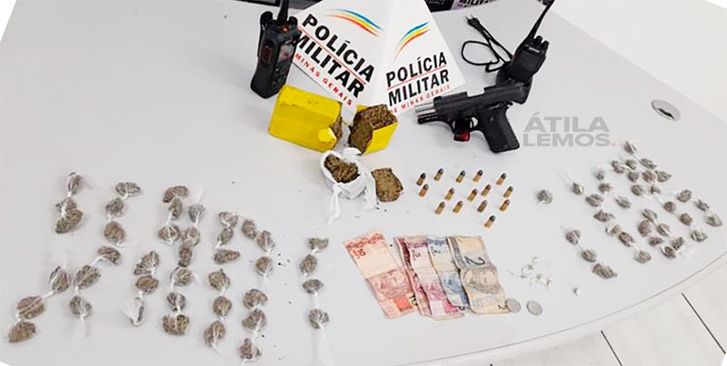 Na residência onde estavam os suspeitos os militares apreenderam 74 buchas, dois tabletes e dois pedaços de substância semelhante à maconha e seis pedras idênticas ao crack.