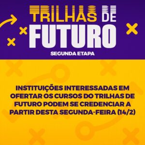 O Governo de Minas, por meio da Secretaria de Educação de Minas Gerais (SEE/MG), abre edital para credenciamento de instituições para a 2ª edição do Trilhas de Futuro, projeto que oferece cursos técnicos gratuitos a estudantes do ensino médio. Escolas interessadas em disponibilizar as formações poderão se cadastrar até 4/3. O resultado será publicado em 28/3.