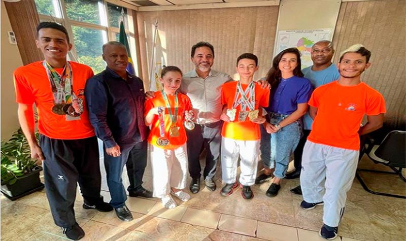 Atletas do Taekwondo são recebidos pelo Prefeito de Itabira, Marco Lage
