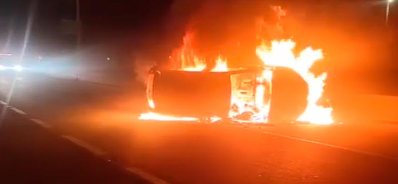 Carro fica carbonizado na BR381 e duas pessoas morrem; vídeo