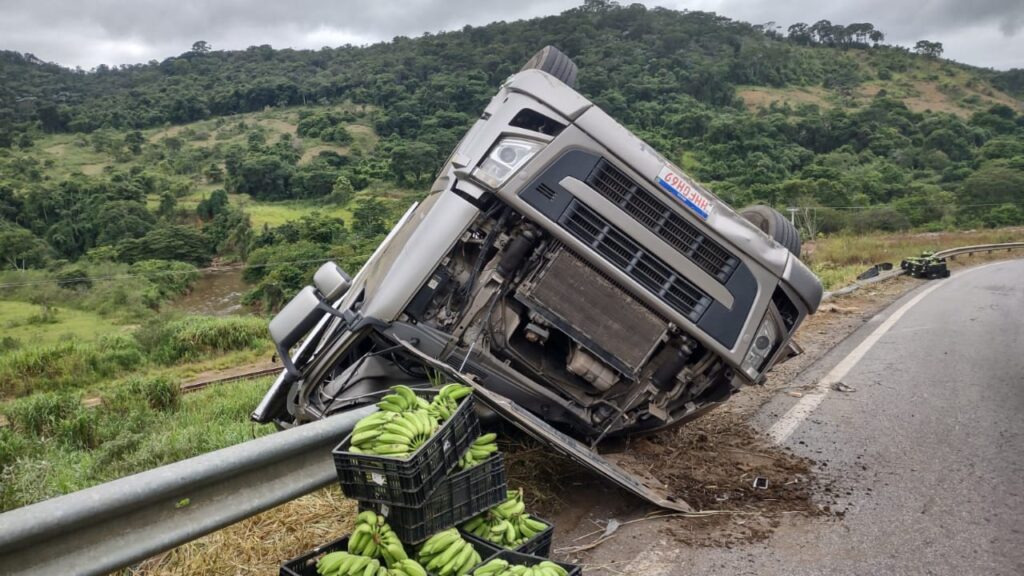 De acordo com as informações, o condutor Wagner Ferreira Vasconcelos, de 49 anos, contou aos Militares que saiu da cidade de Governador Valadares com destino ao Ceasa em Belo Horizonte, quando no km 468 da rodovia MGC-120 próximo a entrada para Capoeirana em Nova Era, sofreu mal súbito ficando desacordado na direção da carreta baú Volvo FH 440 de cor prata, placa HHF-0H69 de Betim, saiu para a lateral direita da pista subindo no guard-rail e tombou às margens da rodovia, derramando parte da carga.