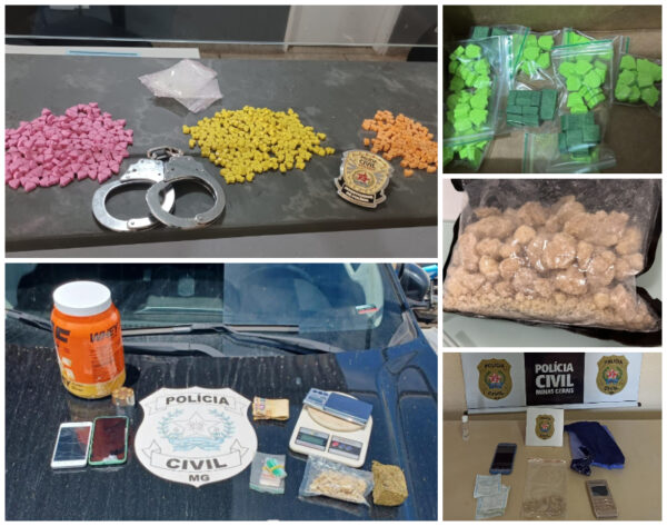 Nove pessoas foram presas pela Polícia Civil de Minas Gerais (PCMG), na manhã desta terça-feira (19/4), durante a operação Overdose, realizada no município de Paracatu, Noroeste do estado, e nas cidades de Uberlândia, Araguari, Ituiutaba e Frutal, Triângulo Mineiro. No curso dos trabalhos, os policiais ainda apreenderam cerca de mil comprimidos de ecstasy, vasta quantidade de MDMA e porções de maconha. A Justiça também decretou a indisponibilidade de R$ 640 mil do grupo criminoso.