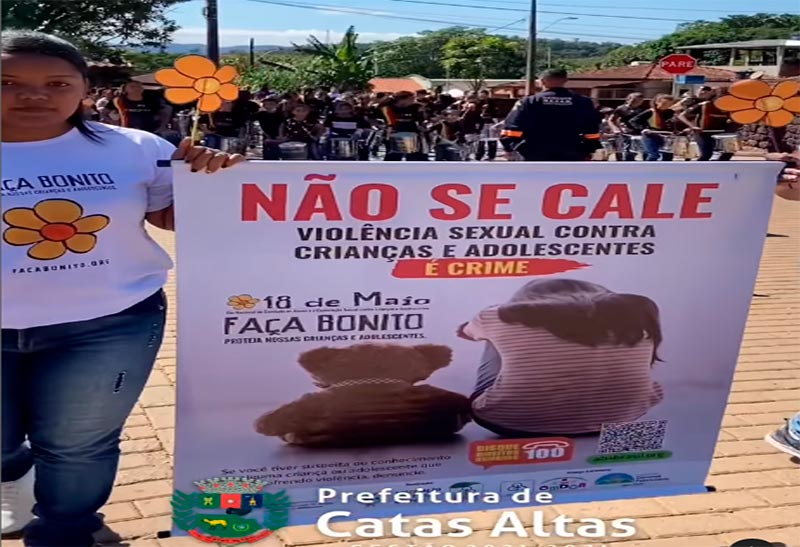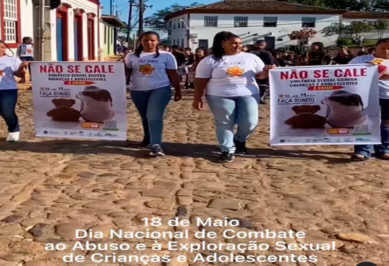 Destaque para a passeata que mobilizou as escolas do município e fizeram alusão ao Dia Nacional de Combate e à Exploração Sexual contra Crianças e Adolescentes, organizada pela Prefeitura de Catas Altas, por meio da Secretaria de Desenvolvimento Social, Conselho Tutelar, Centro de Referência de Assistência Social (CRAS), com apoio da Polícia Militar e participação do grupo Catas Reggae.
