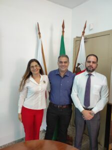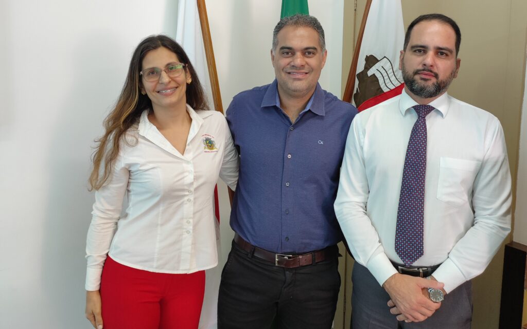 A gerente do posto, Tarsila de Figueiredo; o presidente da Câmara Gustavo Maciel e o delegado Bernardo de Barros. Acom/CMJM