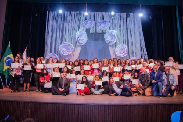 Emoção, gritos de alegria e a satisfação estampada no rosto das formandas transformaram em festa a entrega de certificados a 120 mulheres que concluíram um curso de costureira. O teatro lotado da Fundação Cultural Carlos Drummond de Andrade foi o palco perfeito para elas comemorarem, com familiares e autoridades, o aprendizado na produção de Costura – uniformes, lingerie e artesanato sustentável “Faça e Venda”.