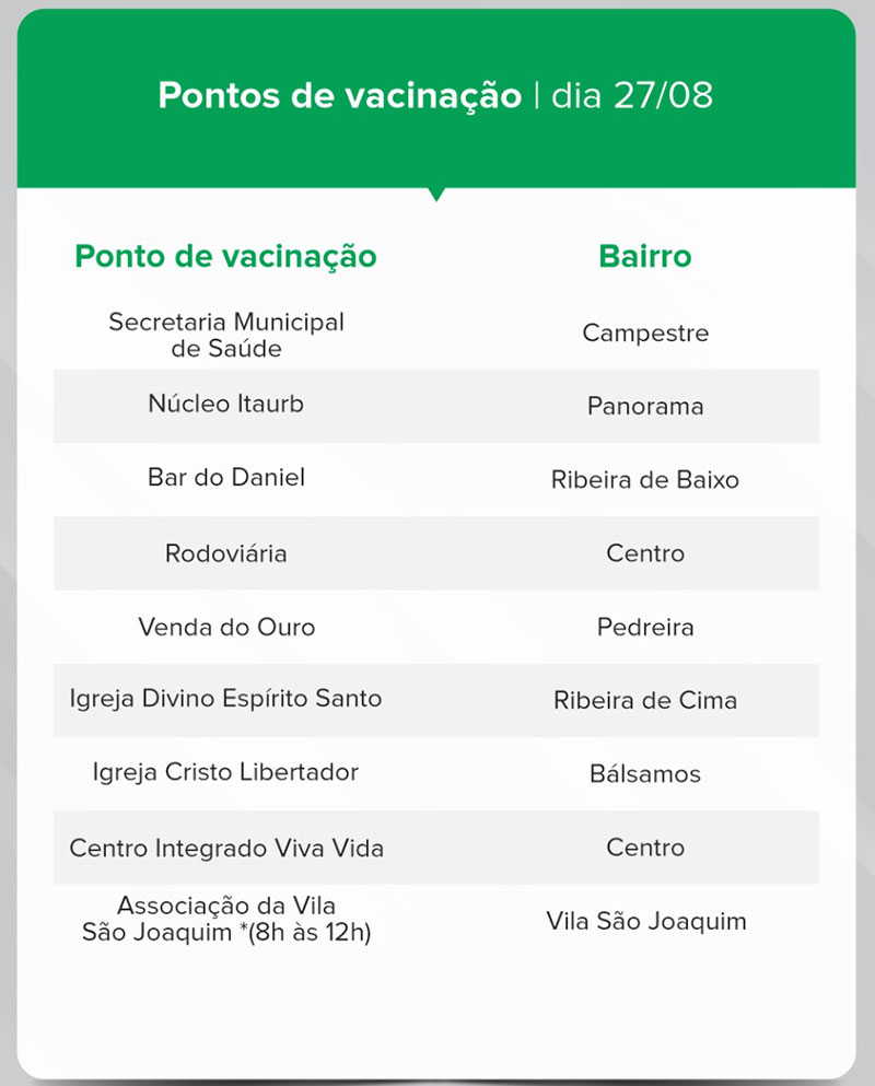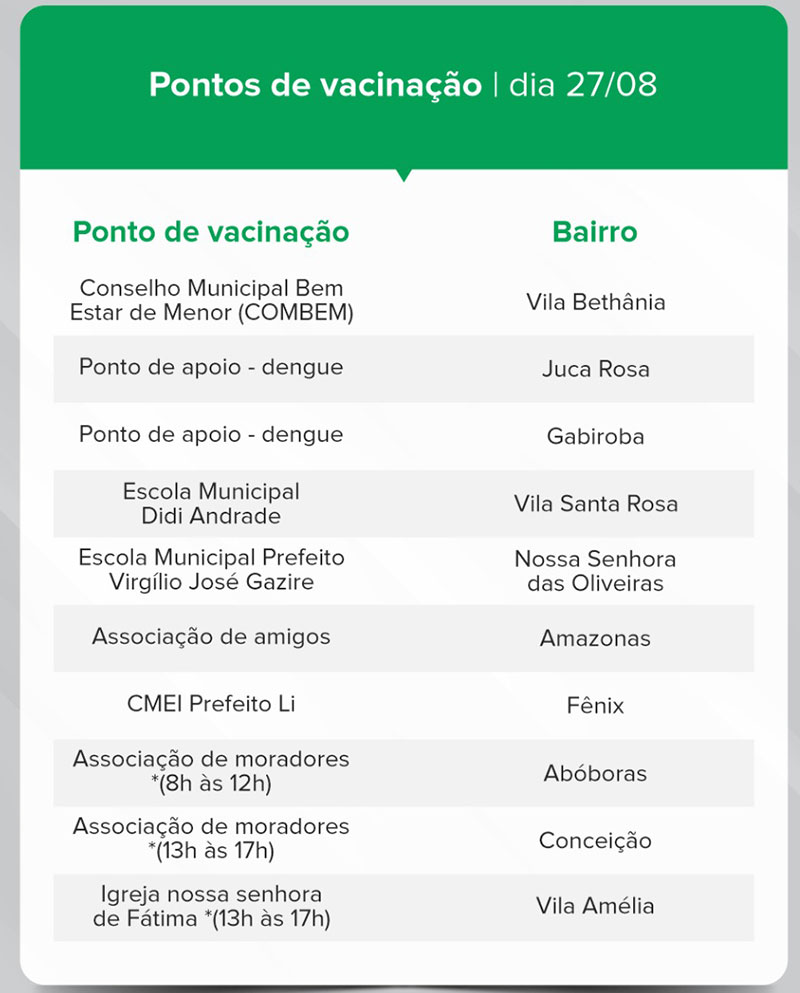 A campanha teve início ainda no mês de julho, com a vacinação nos distritos. Agora, chega à sede do município. A imunização contra o vírus da raiva é indicada para caninos e felinos a partir de 3 meses de idade, e ocorre das 8h às 17h em todos os pontos de vacinação definidos. Para a imunização animal os postos de vacinação serão estruturados nas áreas externas de algumas Unidades Básicas de Saúde (UBS), em praças públicas e centros comunitários.
