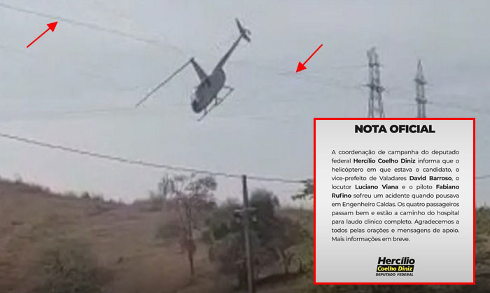 Helicóptero com deputado Hercílio Diniz cai em Minas; vídeo
