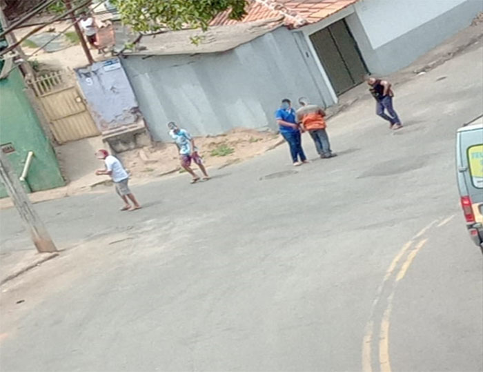 Após os tiros vários populares foram para a rua assustados, e alguns começaram a pegar as cápsulas deflagradas que estavam caídas no asfalto.