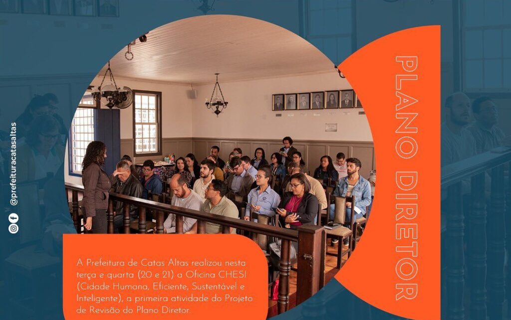 Prefeitura inicia trabalhos para revisão do plano diretor A Prefeitura de Catas Altas realizou nesta terça e quarta (20 e 21) a Oficina CHESI (Cidade Humana, Eficiente, Sustentável e Inteligente), a primeira atividade do Projeto de Revisão do Plano Diretor. . A oficina foi direcionada a representantes dos 4 agentes de desenvolvimento: poder público, iniciativa […]