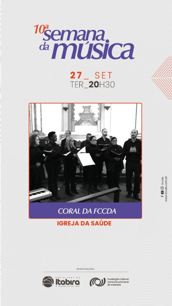Coral da FCCDA se apresenta hoje na igreja da Saúde Nesta terça-feira, 27 de outubro, o Coral da Fundação Carlos Drummond de Andrade fará uma apresentação para o público de Itabira na Igreja da Saúde às 20h30. Hoje, o grupo que reúne gerações de apaixonados pelo canto tem ensaios semanais e ensaios de naipes para […]