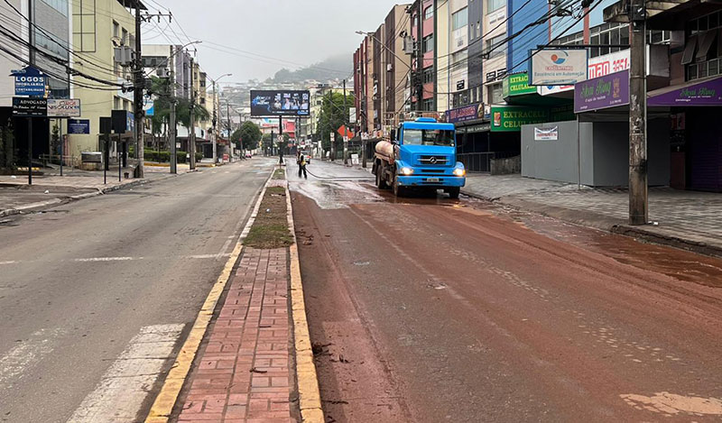 Prefeitura tira lama das ruas após temporal em Monlevade; vídeos