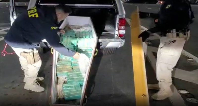 PRF: Caixão recheado; homem é preso levando 50kg de crack; vídeo