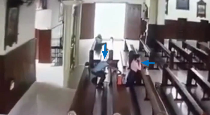 Nem a igreja respeitam mais, homem furta bolsa de fiel; vídeo