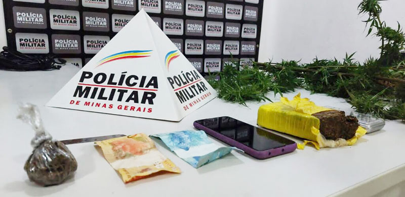 Os Militares em verificação, utilizando o cão de faro Comaf, localizaram uma barra de maconha prensada, uma porção da mesma droga, um pé de maconha, um aparelho celular, uma balança de precisão, e cerca de R$120,00 reais em dinheiro.